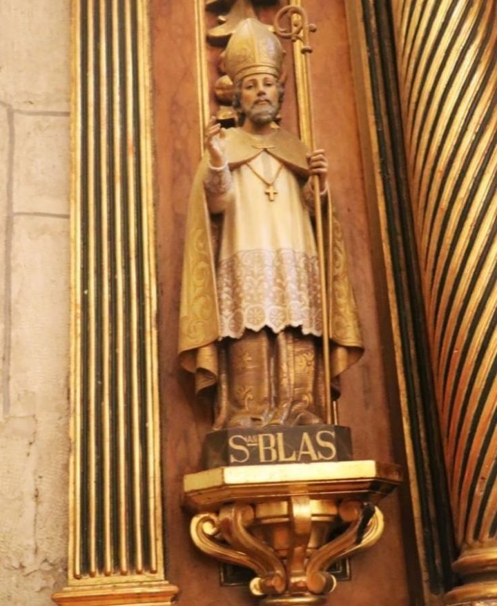 Blas de Sebaste, fue obispo de Sebaste. Santo armenio que destacó por su poder para sanar personas y animales enfermos. Al parecer un niño, tras clavársele una espina en la garganta se estaba ahogando y fue salvado por San Blas. De aquí que sea considerado patrono de los enfermos de garganta y de los otorrinolaringólogos.