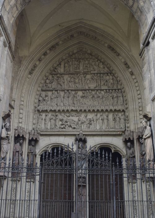 Ocupa el mainel de este arco una hermosa imagen de María de lo más delicado del arte gótico de la ciudad.